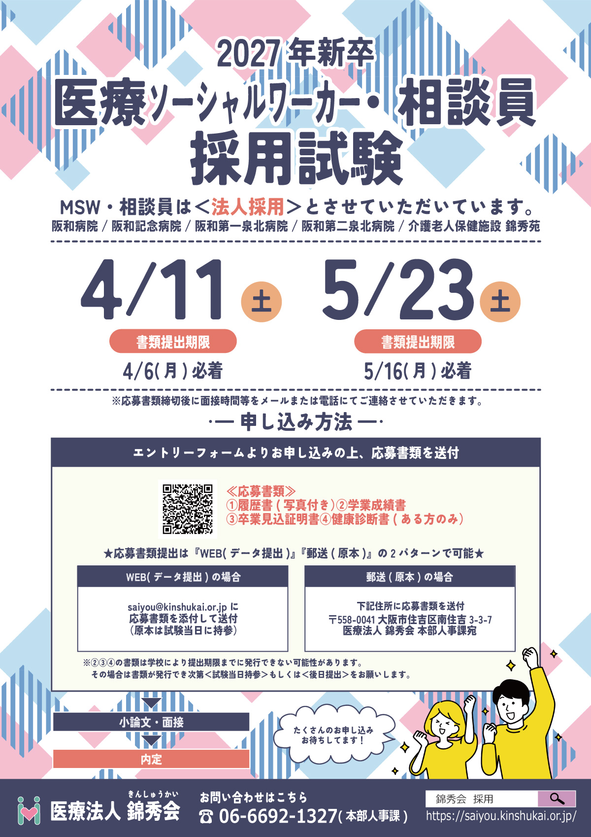 ※メール(saiyou@kinshukai.or.jp)での送付も受け付けています。